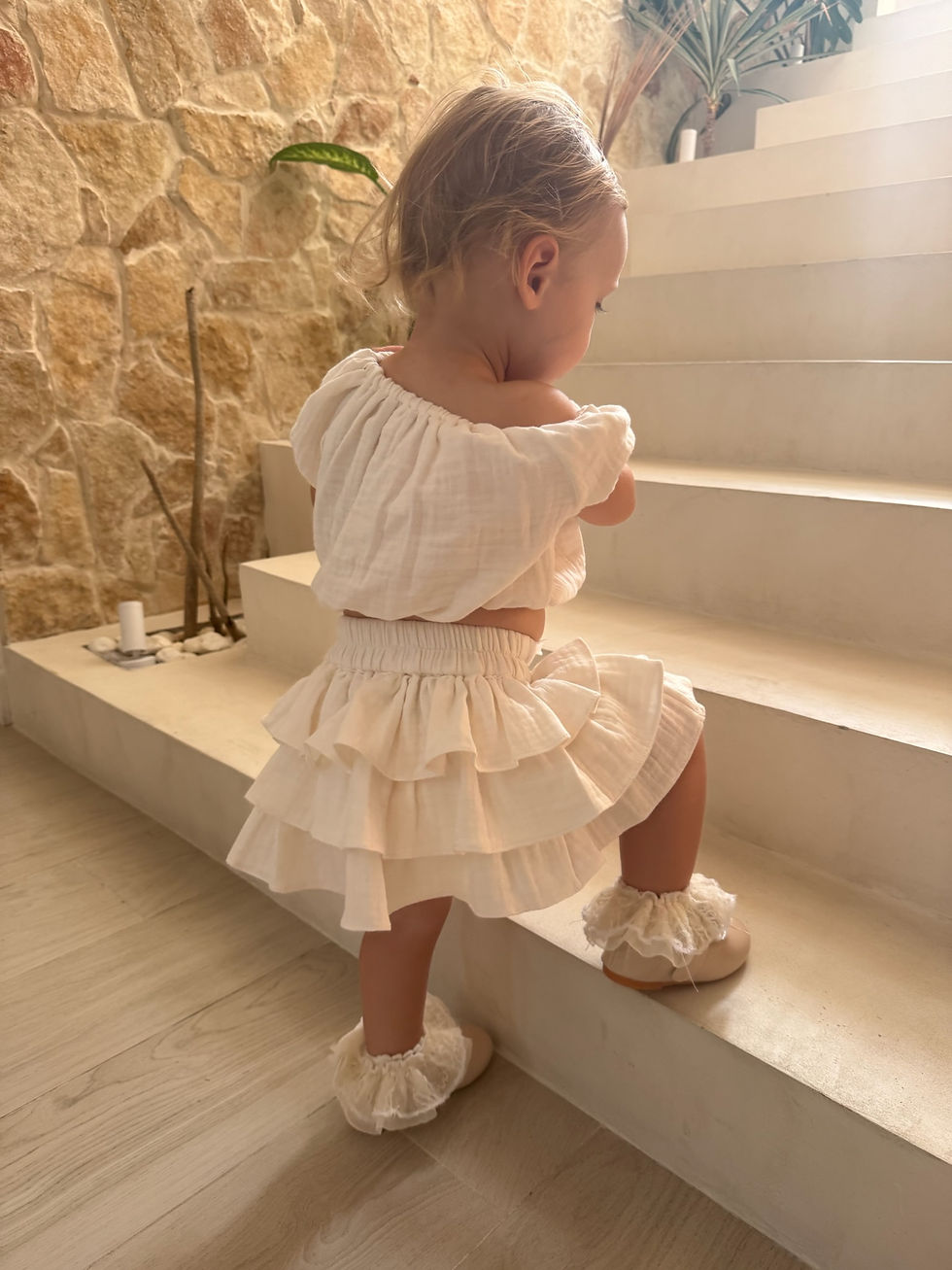 Crafted from 100% cotton cream fabric, each piece is designed to feel as soft and dreamy as it looks. Light, breathable, and naturally luxe, this collection brings a timeless aesthetic to both day-to-day wear and relaxed beachside moments.